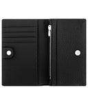 - Organization/Security: Four credit card slots, three slip pockets, coin compartment with zipper