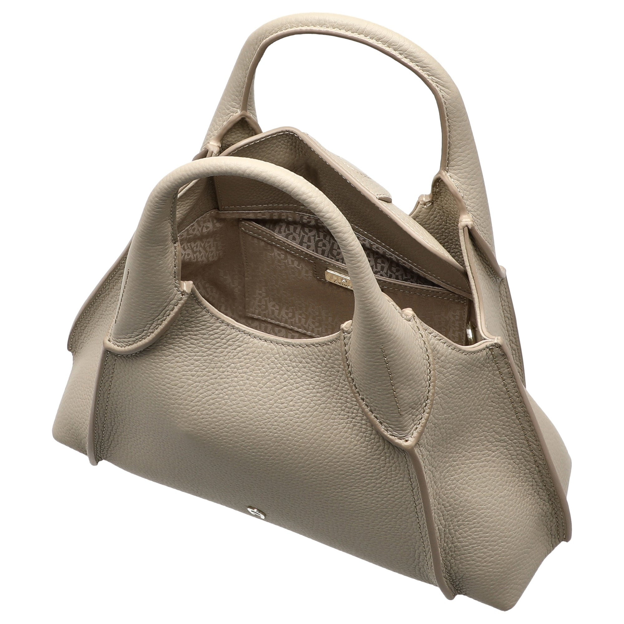 The Aigner Kayla Top Handle Bag M in elegant alpaca beige is a timeless accessory that stylishly complements any wardrobe. The sophisticated design features light gold shiny metal details and a practical magnetic closure that combines comfort and security. With a handle height of 12.5 cm and an adjustable shoulder strap (58–65 cm), the bag offers versatile carrying options for everyday use or special occasions. The high-quality material feels pleasantly soft and ensures long-lasting durability. Inside, the bag impresses with a clear slip pocket and sturdy feet at the bottom, providing perfect protection for your favorite items.