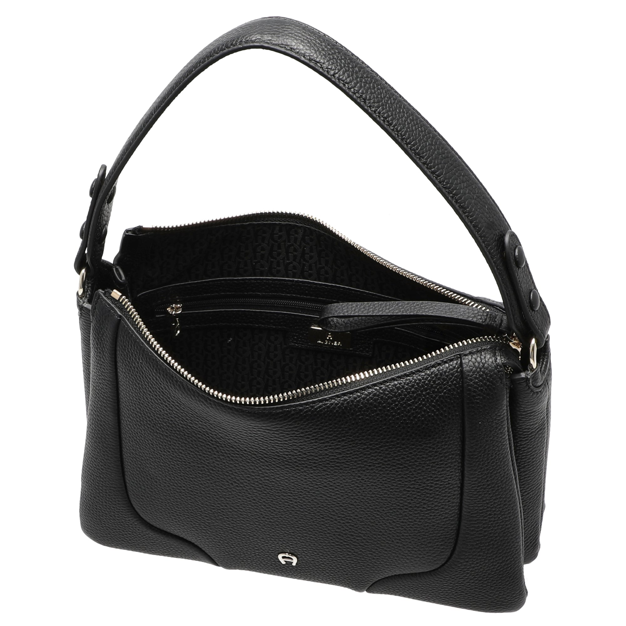 Discover the Aigner Mara S tote bag in elegant black, distinguished by its timeless design and high-quality craftsmanship. The luxurious material feels pleasantly soft and guarantees durable quality that will accompany you on any occasion. With its sophisticated look and clean lines, this stylish handbag can effortlessly be integrated into a variety of outfits—whether for everyday wear, special events, or professional settings. The practical closure ensures secure fastening, while the interior with well-thought-out compartments provides organized storage for your essential items. The robust exterior materials combine protection and style, making this bag an indispensable companion for fashion-conscious women.