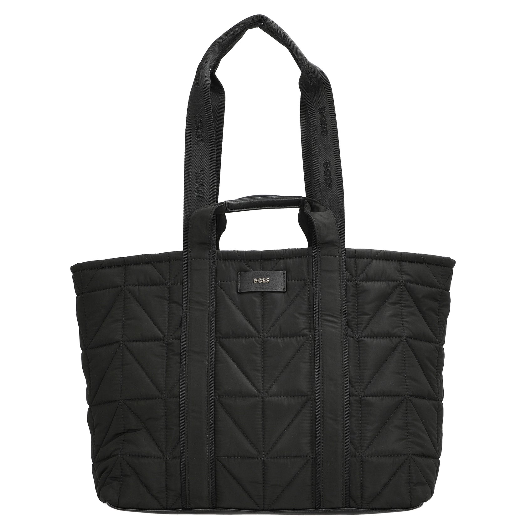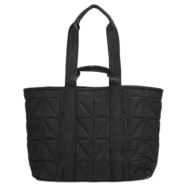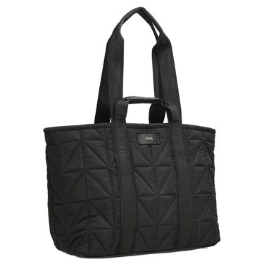 The BOSS Women Palmah Tote NY is an elegant shopper in classic black, perfect for everyday use. The padded design with soft quilting gives the bag a modern and high-quality appearance. Featuring two carrying handles, including a longer one with a logo inscription, it offers versatile carrying options. The practical buckle closure ensures secure fastening and easy access. The subtle metal logo adds a stylish accent.