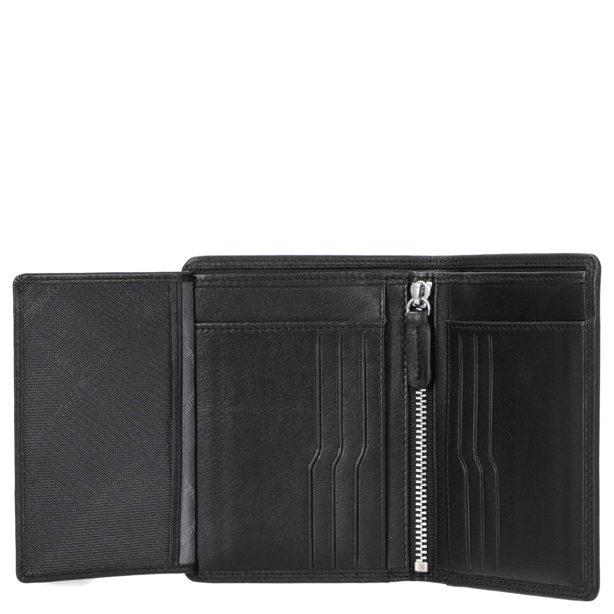 The Braun Büffel Golf RFID ID Holder features an elegant black color and impresses with high-quality, fine-grain cowhide leather that has a subtle sheen and pleasant feel. Refined details such as the sporty double stitching, a satin-finished logo emblem, and a discreet silver embossing give the holder an exclusive character. The anthracite-colored logo lining provides a stylish finish. Particularly practical is the integrated RFID protection, which reliably shields your cards from unauthorized scanning. With a size of 12.3 cm and 9 card slots, it is ideal for everyday use and on the go.