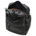 - 1 padded compartment with orange leather trim and black textile flap