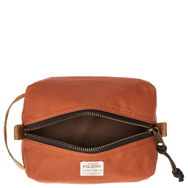 The Filson Tin Cloth Dopp Kit in the color rust combines timeless design with high functionality. It offers ample space for all essential grooming products and travel accessories. The durable Tin Cloth material is water-resistant and ensures long-lasting use. With sturdy zippers and a spacious interior, it is ideal for daily use and travel. A stylish companion for fashion-conscious women who appreciate quality.