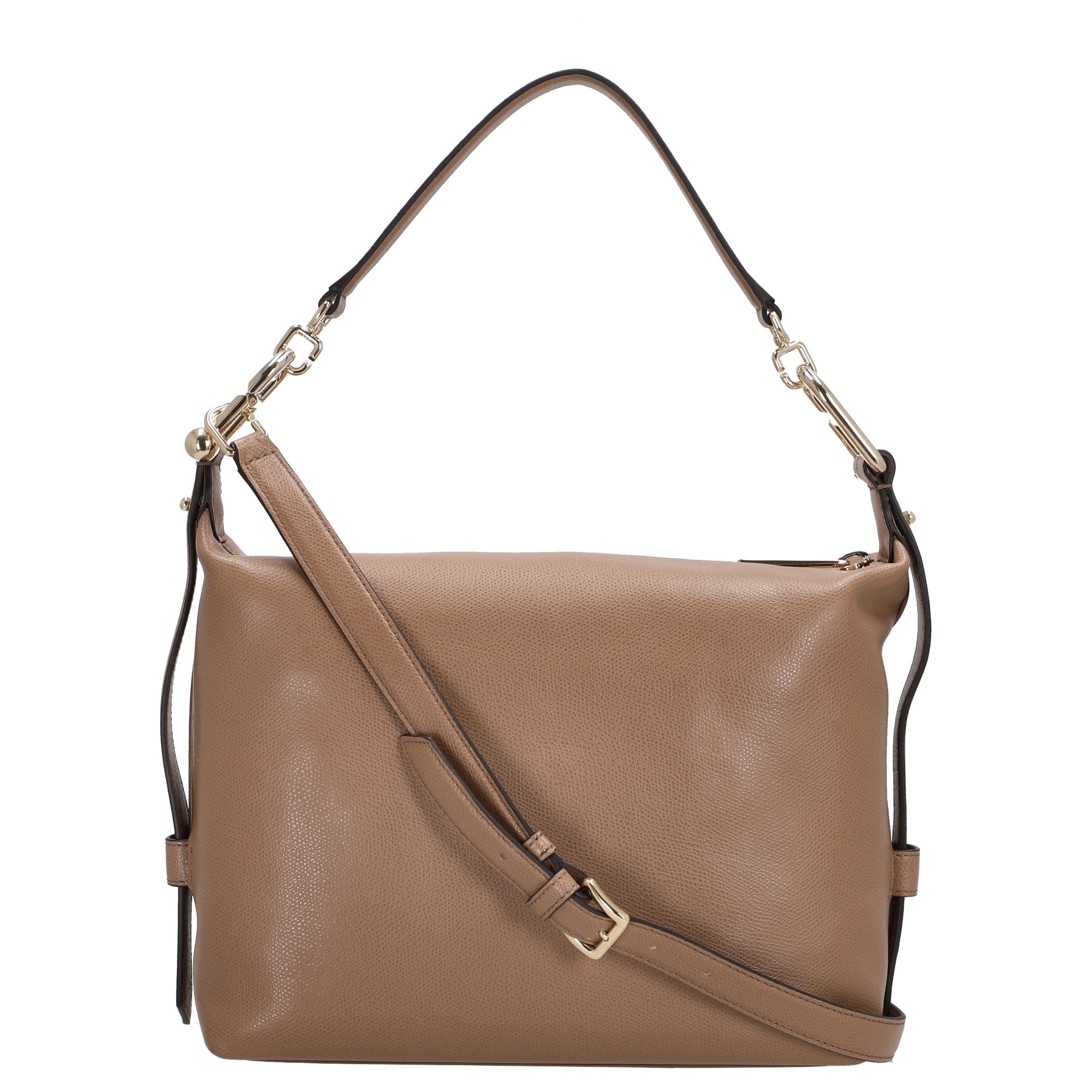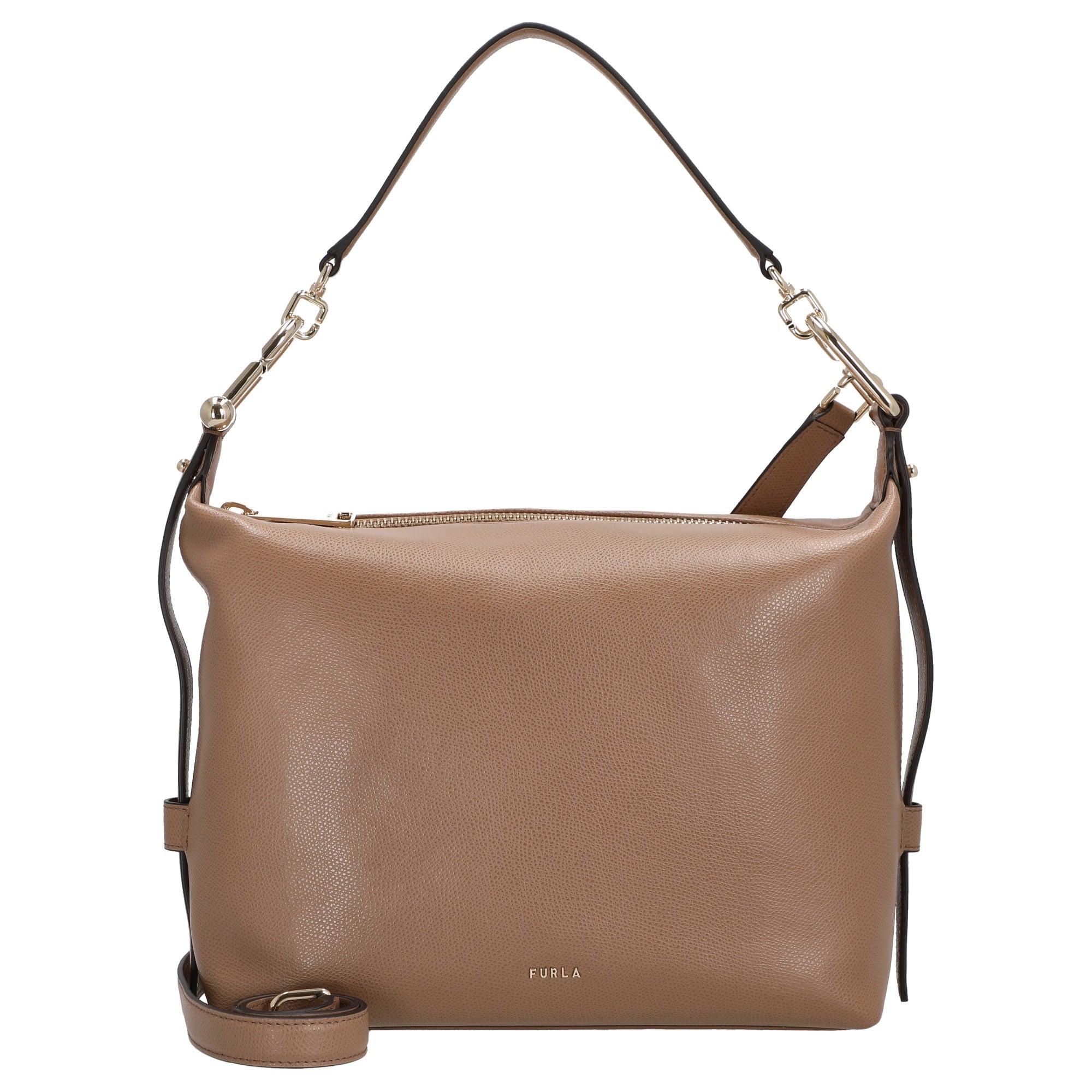 The Furla Tonie M Hobo is an elegant shoulder bag made of fine, textured leather in a warm toffee color. It impresses with its versatile design, featuring two different straps that allow for comfortable shoulder wear or use as a crossbody bag. The bag combines functional details with a fashionable appeal, making it ideal for a variety of everyday and special occasion looks.