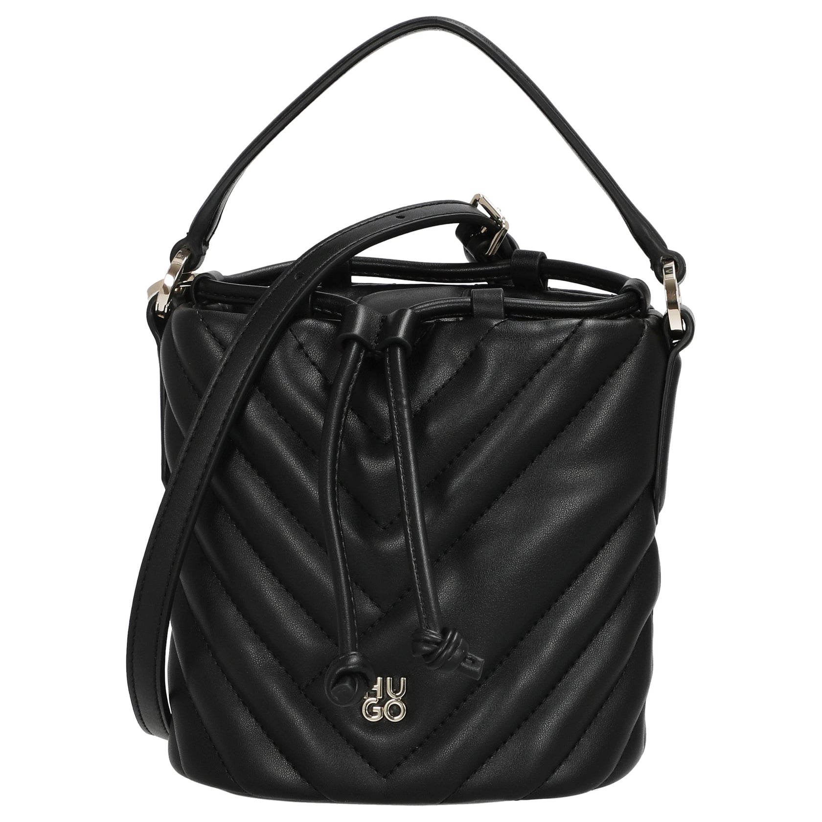The HUGO Women's Chris 2.0 is an elegant shoulder bag in classic black, featuring a soft, synthetic coated textile that adds a stylish finish to any outfit. The polished stack logo provides a subtle brand accent, while the detachable shoulder strap offers versatile carrying options.