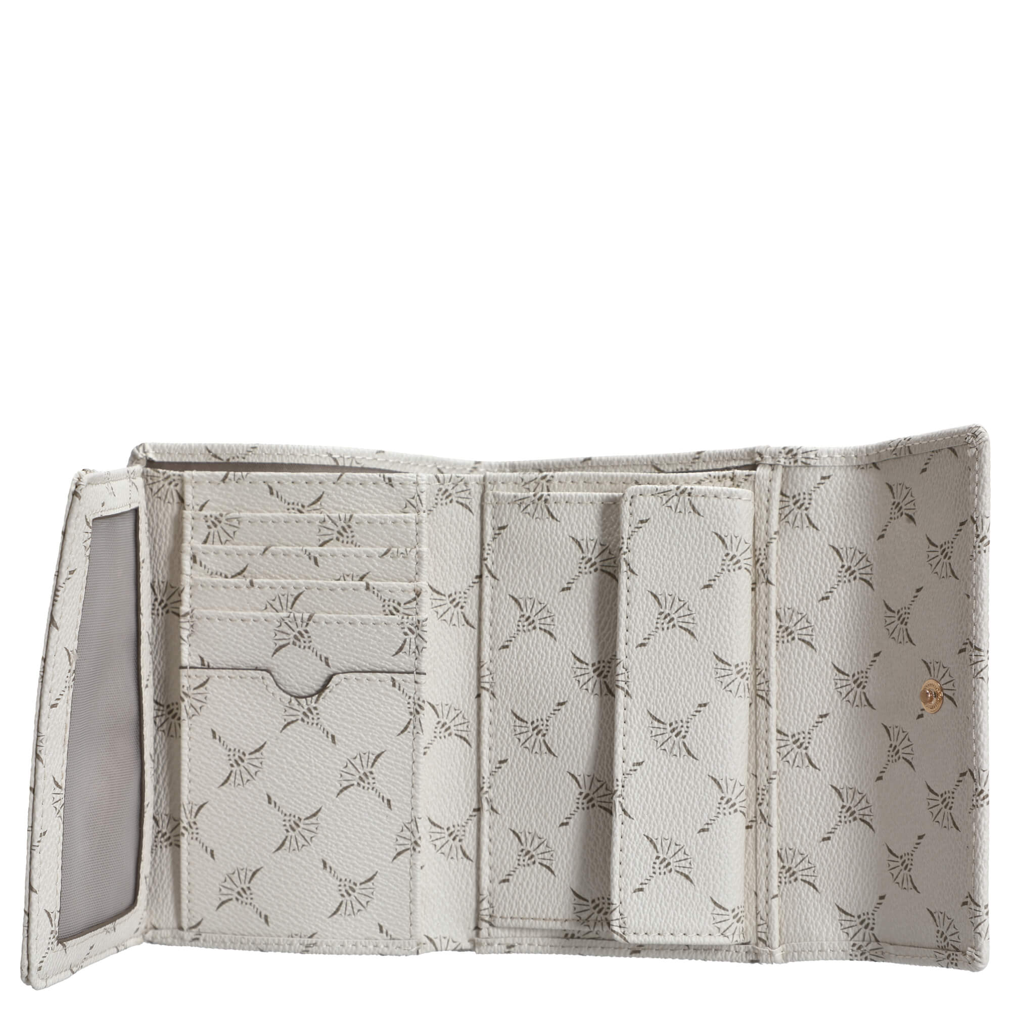 Die Joop Women Cortina 1.0 Cosma ist eine elegante Geldbörse in **offwhite** mit stilvollem Cornflower Print. Sie bietet ausreichend Platz für wichtige Karten und Münzen und lässt sich ideal mit der passenden Handtasche kombinieren. Das edle Design macht sie zu einem funktionalen und modischen Accessoire.
