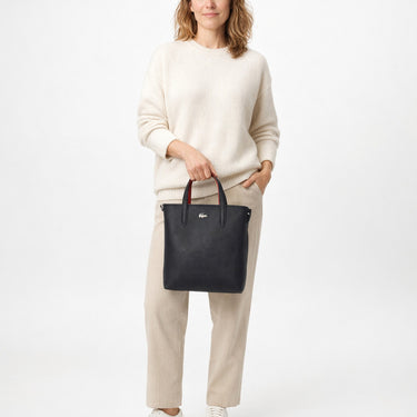 The Lacoste Anna tote bag in elegant black sand is a modern interpretation of the iconic Petit Piqué collection. Its vertical format and textured surface give the bag a timeless, stylish character. It offers versatile carrying options and ample space for daily essentials.