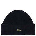 Lacoste Unisex Beanie - Ribbed Wool Hat (Color: navy blue/flour)