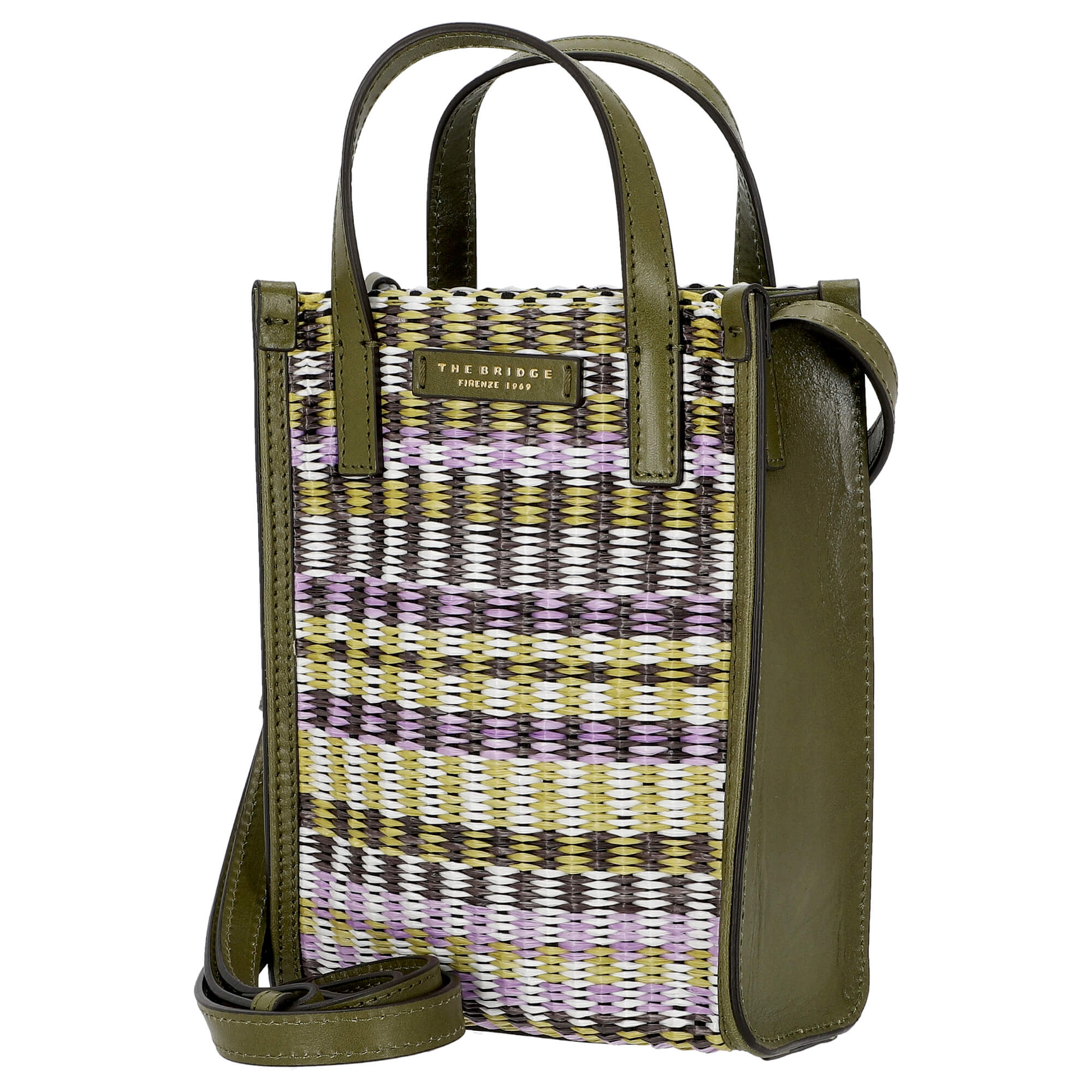 Der The Bridge Mirra Wow Shopper besticht durch sein auffälliges Design in den Farben Olivegrün, Lila und Schwarz. Diese elegante Tasche kombiniert einen hochwertigen Materialmix mit einem großzügigen Hauptfach und ist ideal für modebewusste Frauen, die Wert auf Stil und Funktion legen.