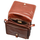 - Organization/Security: Interior divided into three compartments, middle compartment with zipper, additional compartment under the flap, rear zippered pocket