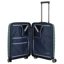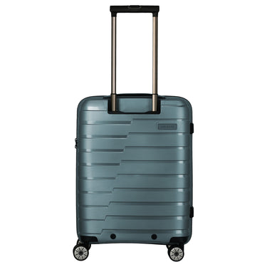 The Travelite Air Base 4-wheel cabin trolley in ice blue combines durability and stylish design. Made from resilient polypropylene, it is virtually indestructible and perfect for frequent travelers. The fashionable interplay of rough surfaces and shiny accents makes it a real eye-catcher. With four smooth-running double wheels and a lockable telescopic handle, it ensures pleasant handling on any surface. For security, the recessed TSA LOCK® combination lock facilitates travel to the USA, Canada, and the UK.