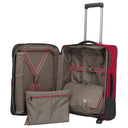 The Travelite Crosslite 2-Wheel Cabin Trolley S measures 54 cm and is available in the color olive. The case is made from recycled PET, making the trolley environmentally friendly. It features an expandable volume of up to 37 liters, providing flexible storage options. A padded exterior compartment protects laptops and includes an organizer for accessories. The two large wheels and adjustable telescopic handle ensure easy handling during travel.