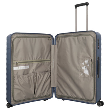 Das Travelite Mooby 3-teilige Trolley-Set in der Farbe marine besteht aus robustem Polypropylen, das aus Ocean-Bound-Plastic hergestellt wird. Die Koffer sind mit einem TSA-Schloss und vier leichtgängigen 360°-Doppelrollen ausgestattet, die eine flexible Handhabung ermöglichen. Der Innenraum ist geräumig und verfügt über Packgurte sowie eine Innentasche zur besseren Organisation. Der Trolley in Größe M bietet ein erweiterbares Volumen von bis zu 73 Litern. Das Set umfasst drei Koffer in den Größen L, M und S mit einem Volumen von 106 l, 73 l und 39 l.