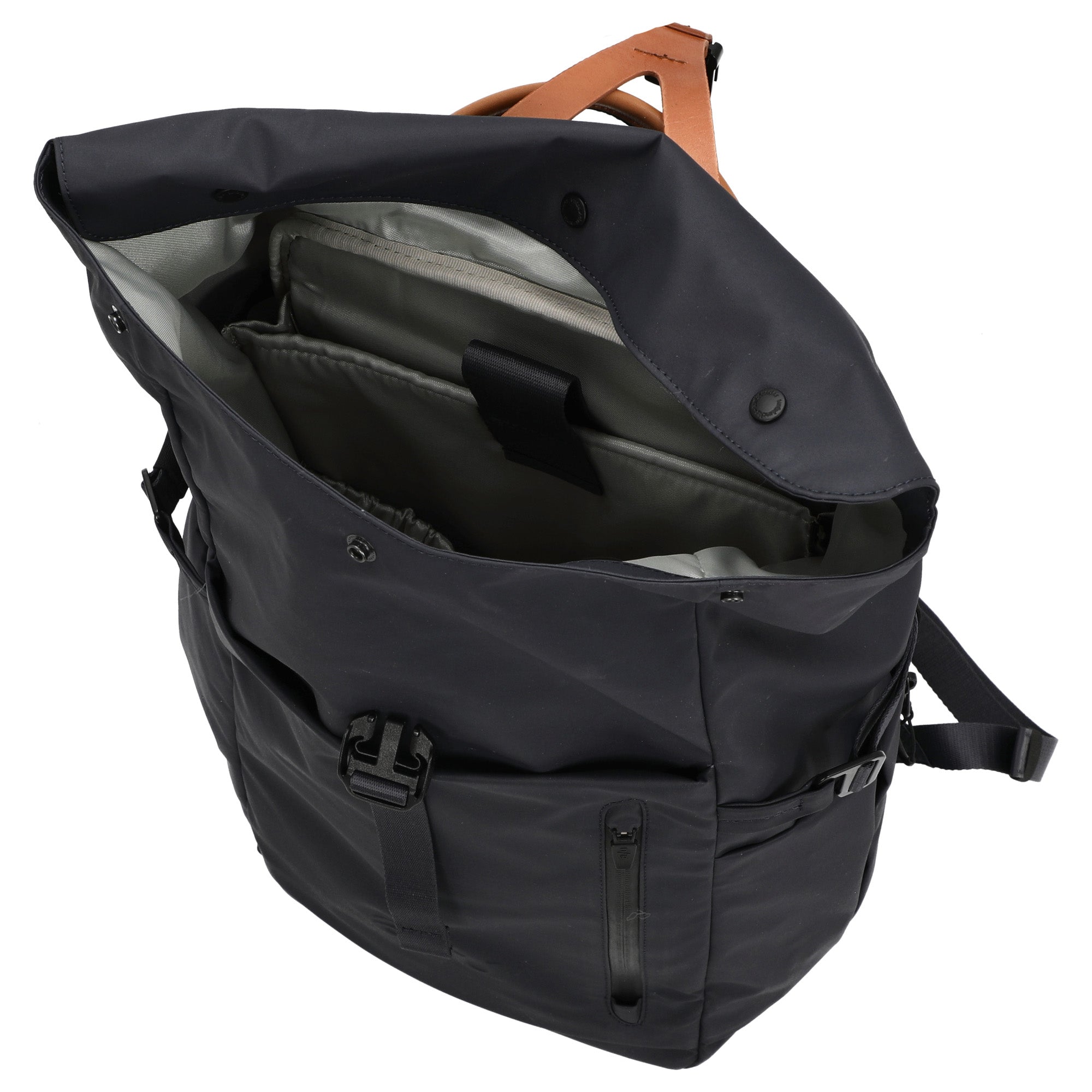 - Besonderheit: Rolltop-Verschluss mit Steckverschluss, wasserdichte und wasserabweisende YKK-Reißverschlüsse, Lederapplikationen