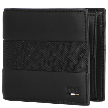 La cartera BOSS Ray MS 4cc en elegante negro combina un diseño moderno con una distribución funcional. Este accesorio sofisticado ofrece espacio suficiente para tarjetas y billetes, ideal para el uso diario. El distintivo logo y los detalles plateados brillantes resaltan la alta calidad de fabricación.