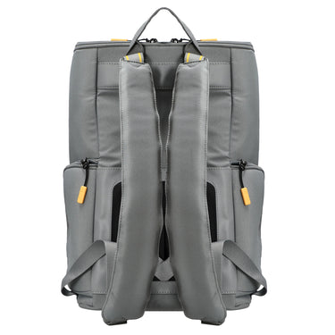 La mochila Mandarina Duck Smart Duck en el color iron es la compañera ideal para el día a día en la ciudad, en la universidad o en actividades al aire libre. Destaca por un gran compartimento principal con práctico cierre de cremallera que ofrece mucho espacio de almacenamiento. Para proteger de forma segura su portátil, cuenta con un compartimento acolchado para portátiles de 14 pulgadas. El soporte lateral para bebidas con cremallera permite un acceso fácil, mientras que el bolsillo interior con cremallera guarda de forma segura objetos pequeños. Gracias al acolchado cómodo en la espalda, la mochila resulta especialmente confortable incluso durante largos períodos de uso.