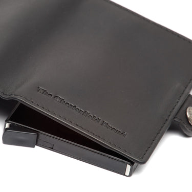 - Comodidad/Manejo: Cierre con botón a presión, compartimento con cremallera en la parte trasera para monedas
