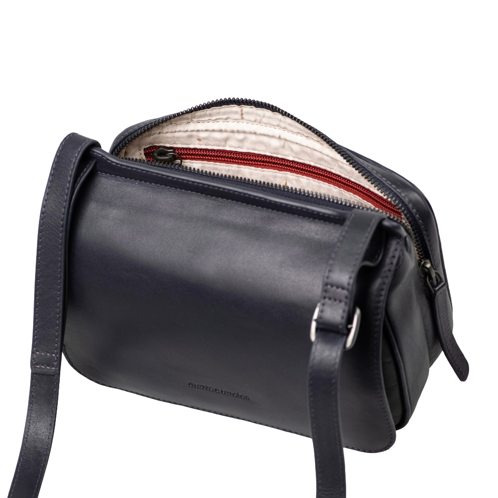 Die Umhängetasche Magnolia aus der Jamies Orchard-Kollektion von aunts & uncles besticht durch ihr weiches, teil-vegetabil gegerbtes Rindleder in elegantem dark horizon. Sie vereint zeitloses Design mit praktischem Nutzen und bietet ein geräumiges Hauptfach, das sich sicher per Reißverschluss verschließen lässt. Die Tasche ist ideal für den Alltag und lässt sich dank des verstellbaren Schultergurts bequem als Crossbody tragen.