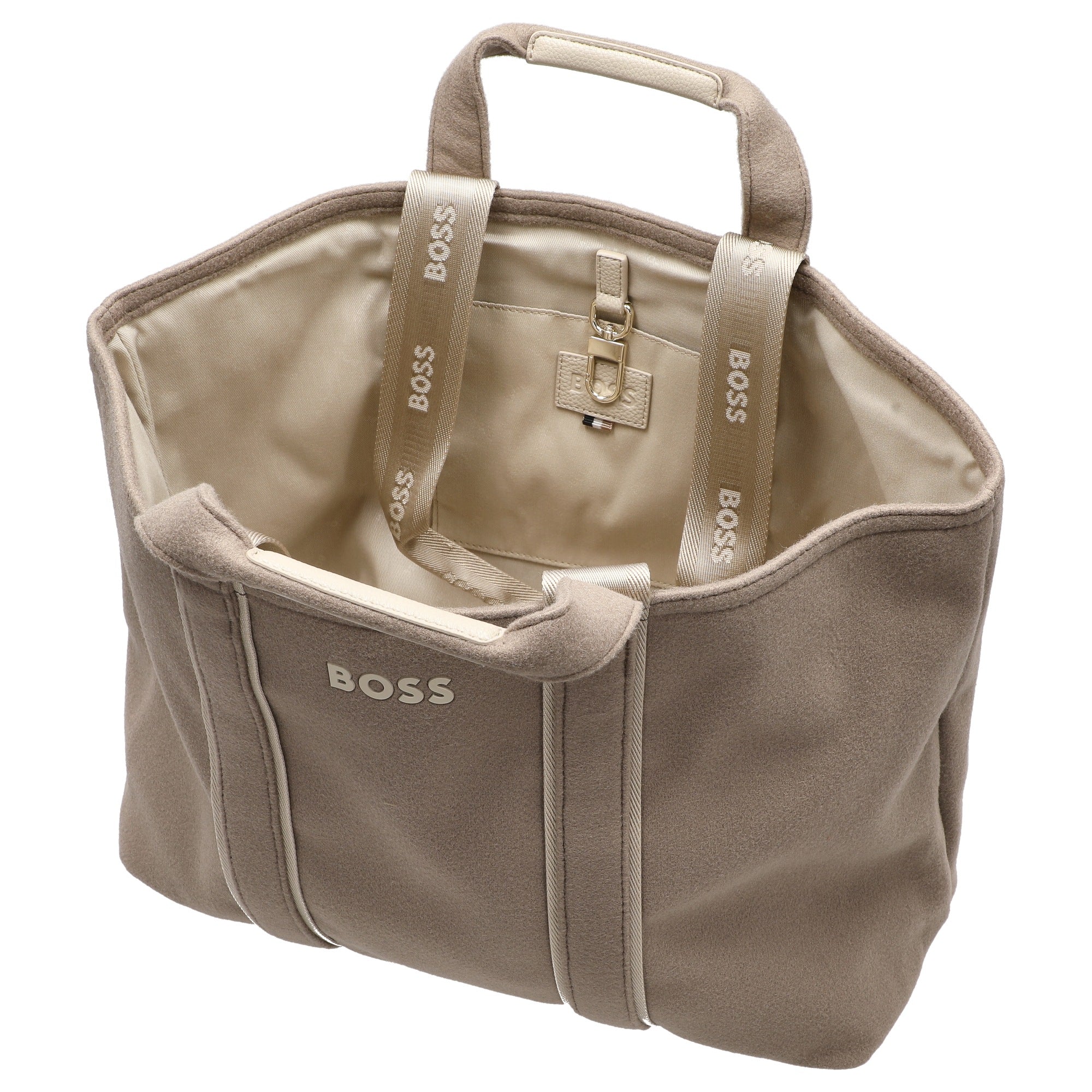 Die BOSS Women Palmah ist ein eleganter Shopper in offenem Braun, der durch sein weiches Gewebe in Woll-Optik besticht. Dieses Modell vereint ein legeres Design mit hochwertigen Details wie dem kontrastfarbenen Branding und Logo-Riemen. Die Tasche bietet eine stilvolle Lösung für den Alltag und ergänzt vielseitig verschiedene Looks. Das nachhaltige Materialkonzept setzt auf recycelten Polyester, was den Shopper besonders wertvoll macht.