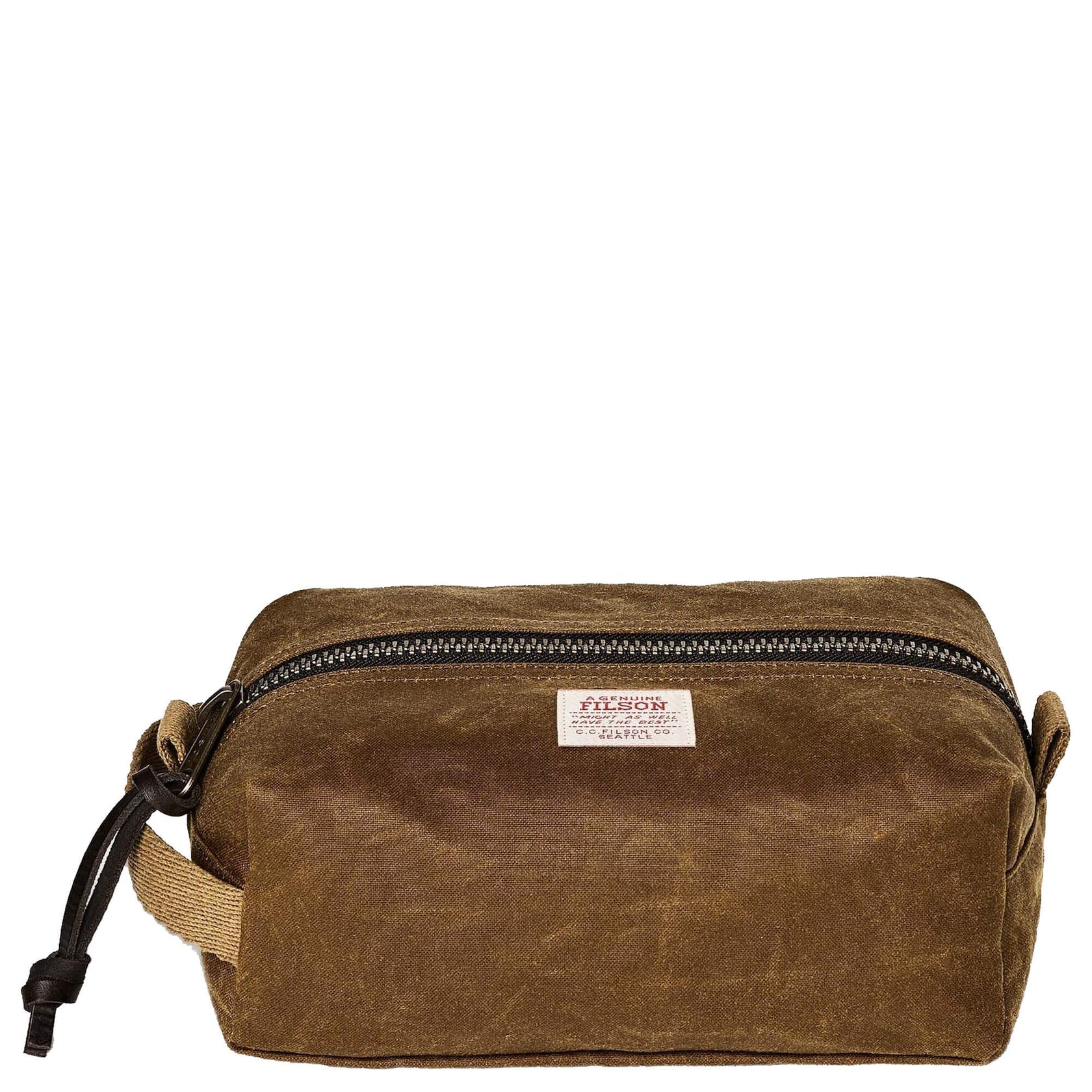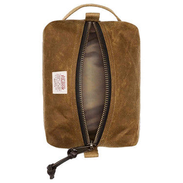 Le trousse de toilette Filson Tin Cloth en couleur dark tan séduit par son design simple et fonctionnel. Confectionné en toile cirée, il est particulièrement robuste et résistant. La trousse de toilette est réduite à l’essentiel et offre un compartiment principal spacieux pour vos articles de soin. Le compartiment principal se ferme en toute sécurité à l’aide d’une fermeture éclair. Une anse de transport pratique sur le côté permet un transport facile.