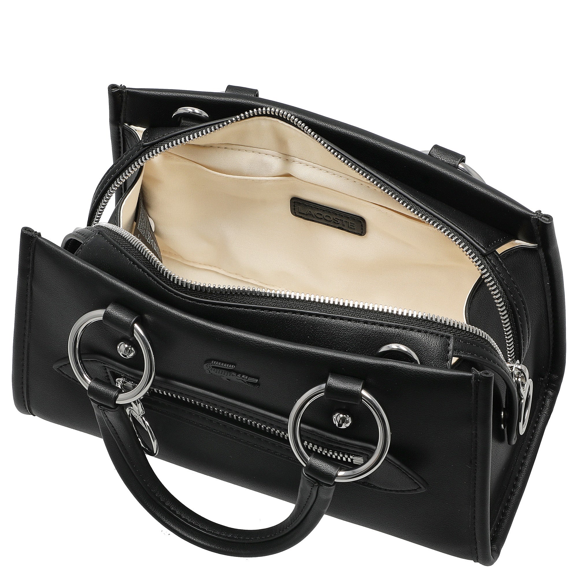 Le Sac à main Lacoste Celys Top Handle est un sac bandoulière élégant en noir classique, qui se prête à de nombreuses combinaisons. Que ce soit pour un look décontracté avec un jean ou une tenue chic pour une soirée, ce sac apporte une touche de style et vous accompagne avec assurance en toutes occasions. Les deux anses longues permettent un port confortable à la main ou de manière décontractée à l'épaule.