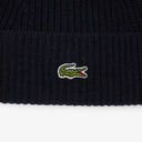 Lacoste Unisex Beanie - Bonnet en laine côtelée (bleu marine/farine)