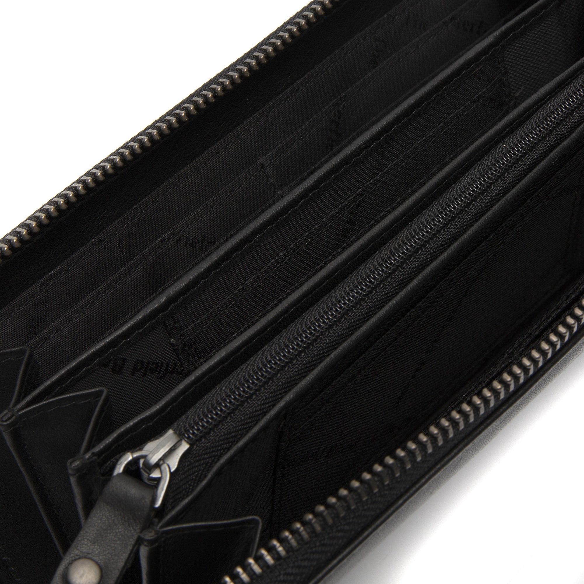 - Organisation/Sicherheit: Separate Fächer für Karten, Quittungen, Bargeld und ein geräumiges Münzfach mit Reißverschluss; zusätzliches Reißverschlussfach auf der Rückseite