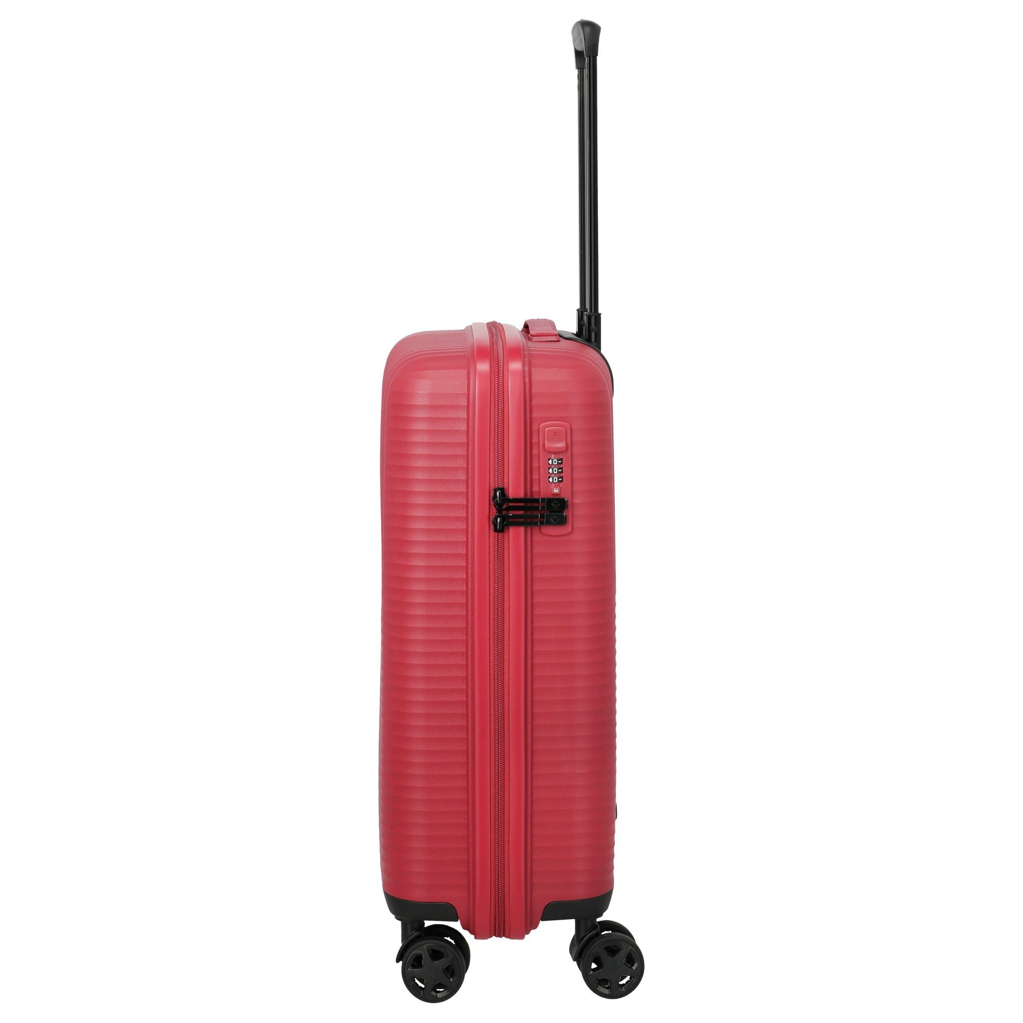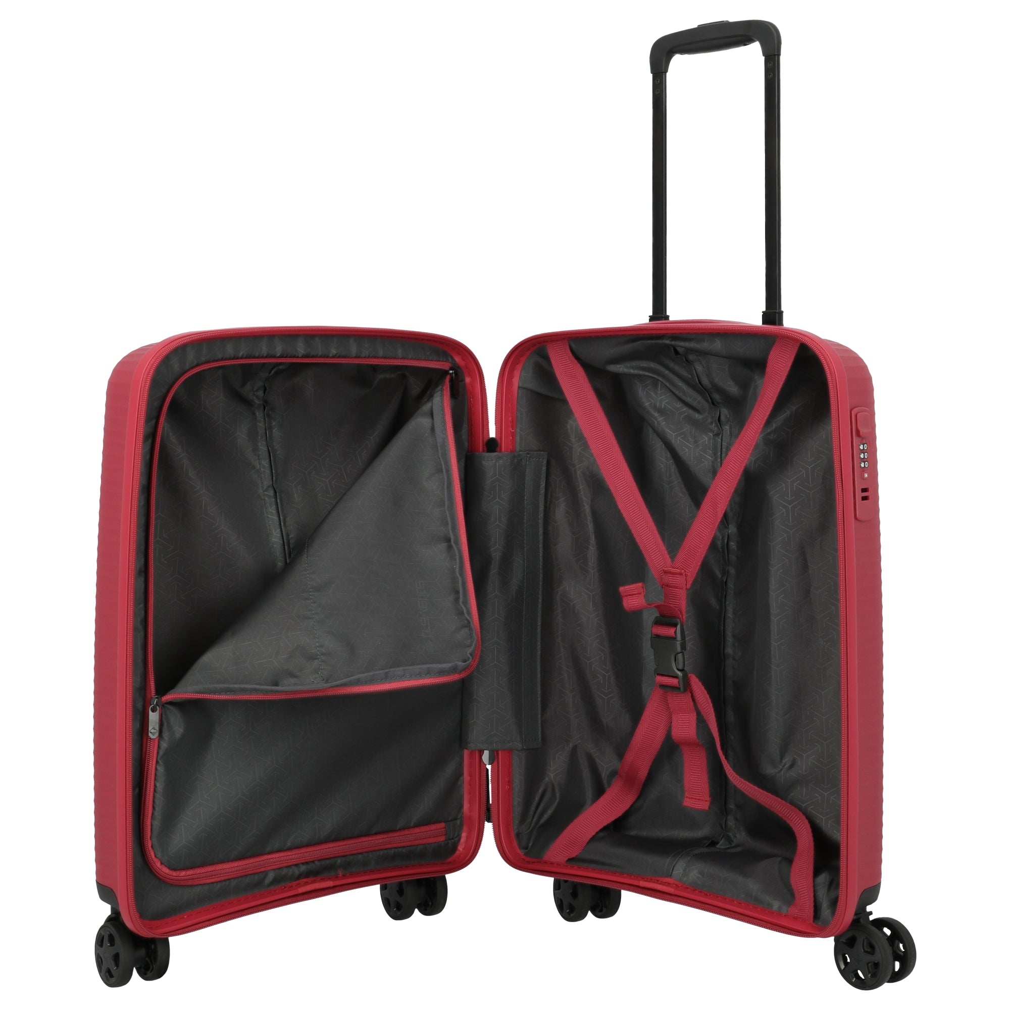 Der Travelite Air Stripe ist ein 4-Rollen-Kabinentrolley in elegantem **Rot**, der durch sein geringes Gewicht und robuste Bauweise überzeugt. Mit seinem stabilen Polypropylengehäuse bietet er zuverlässigen Schutz für Ihr Gepäck. Dieses Modell ist ideal für schnelle und flexible Reisen, bei denen Mobilität und Organisation im Vordergrund stehen.