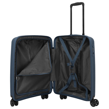 Le Travelite Air Stripe est une valise cabine à 4 roulettes dans un élégant bleu marine. Sa coque robuste en polypropylène offre une protection fiable pour vos bagages de voyage. Son poids léger et ses doubles roulettes silencieuses garantissent une manipulation confortable en déplacement.