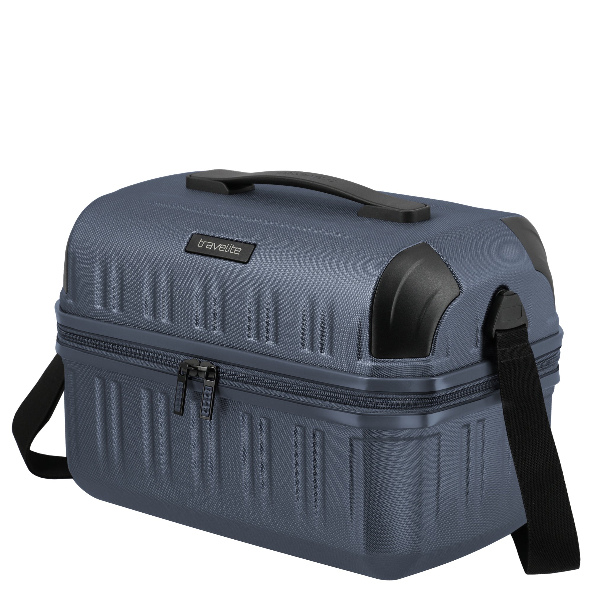 Das Travelite Dynamiic Beautycase in elegantem denim blue ist eine praktische Aufbewahrungslösung für Kosmetikartikel und kleine Technik. Die robuste, kratzfeste Schale schützt den Inhalt zuverlässig vor Stößen. Mit seinem kompakten Design bietet es optimalen Schutz und Ordnung für unterwegs.