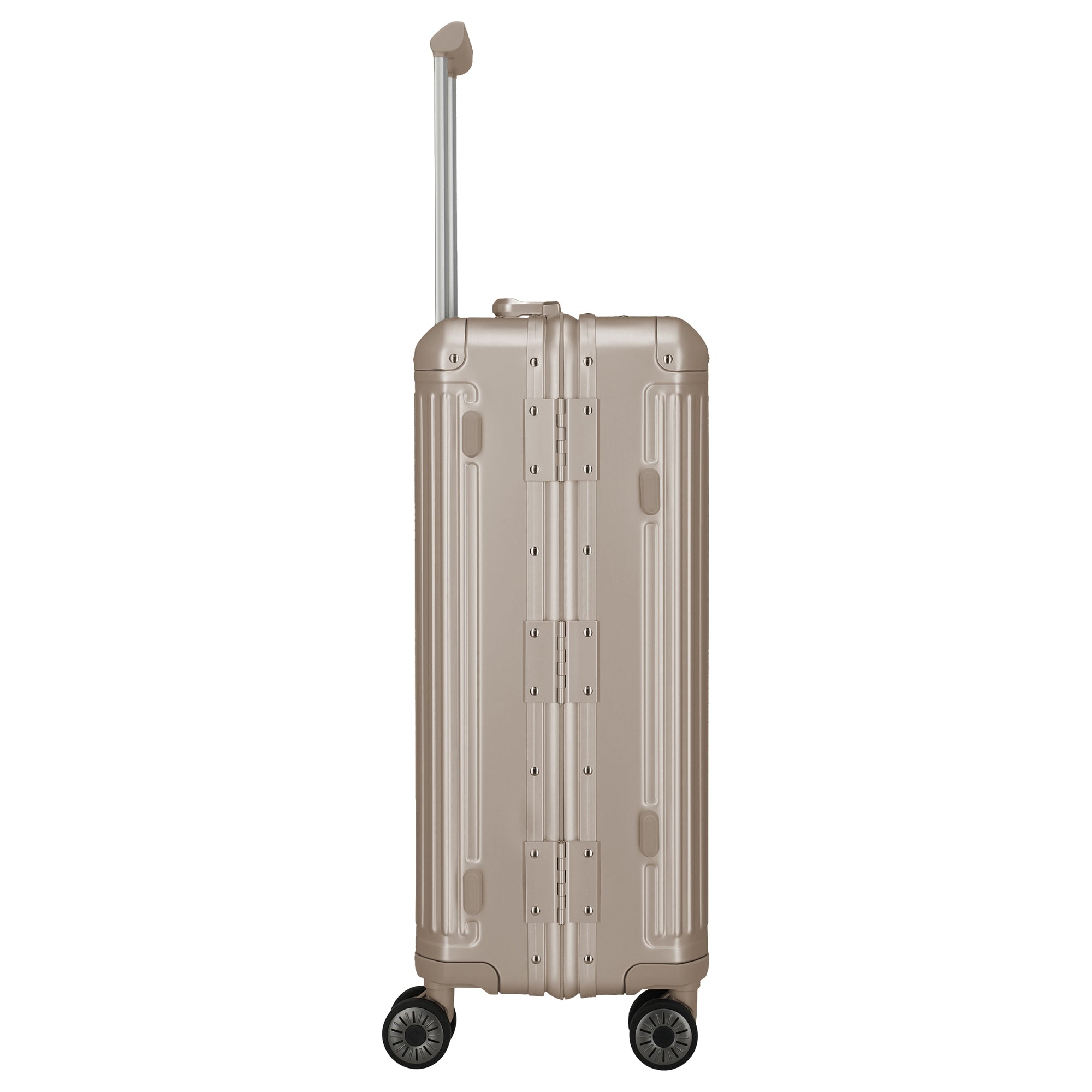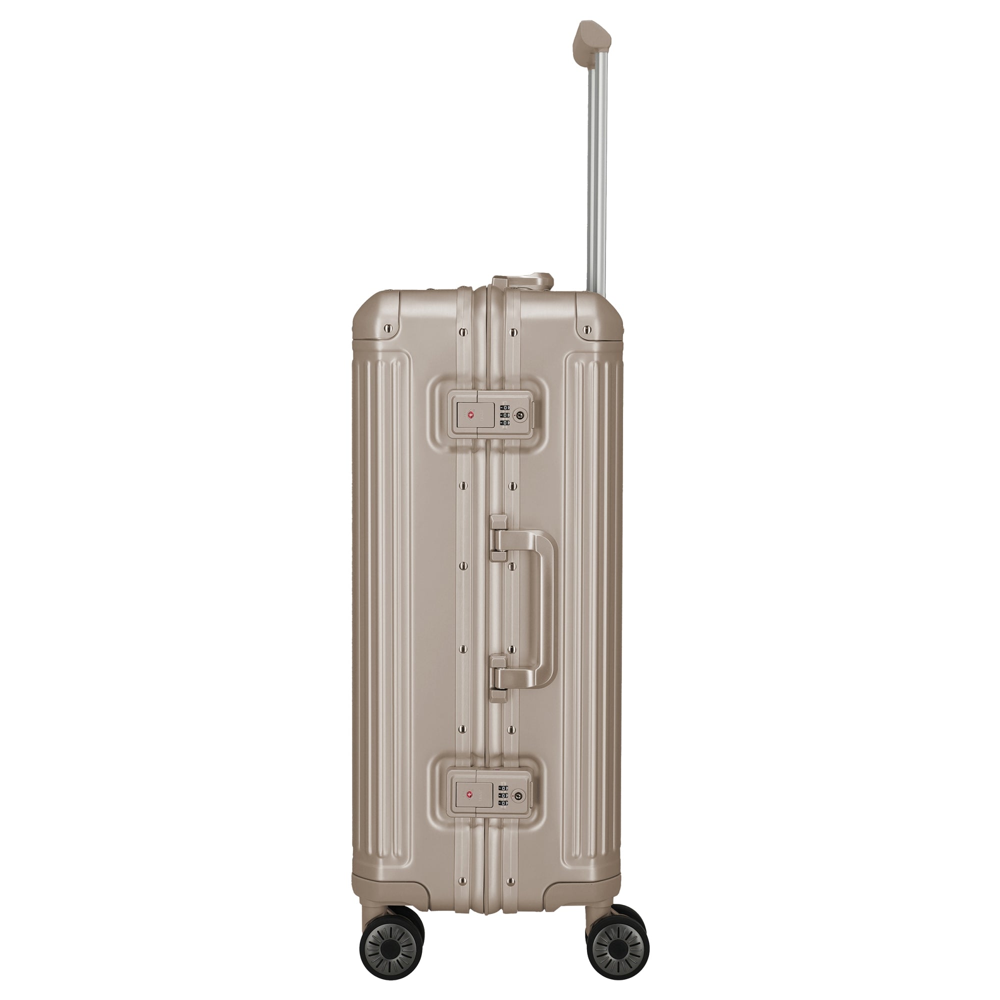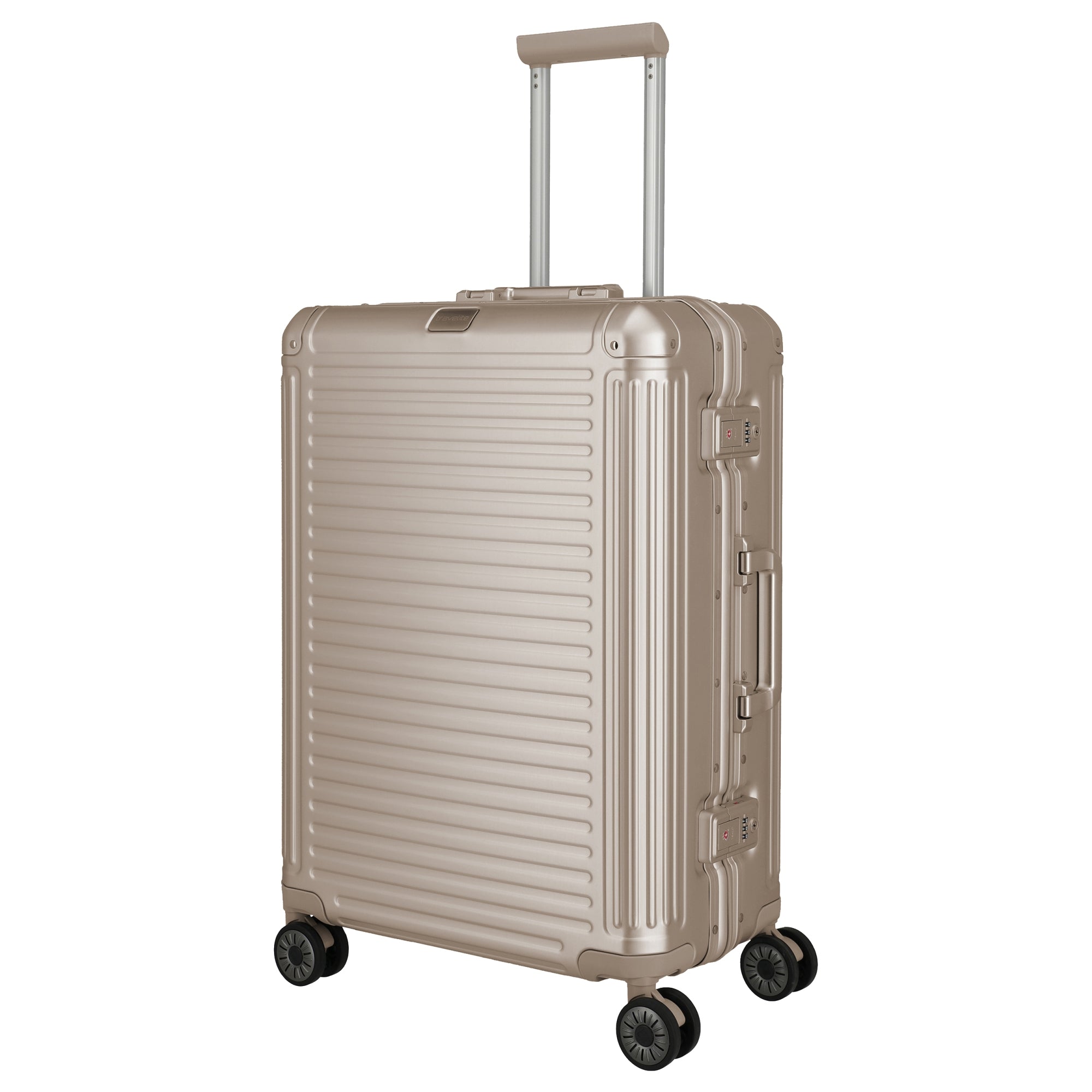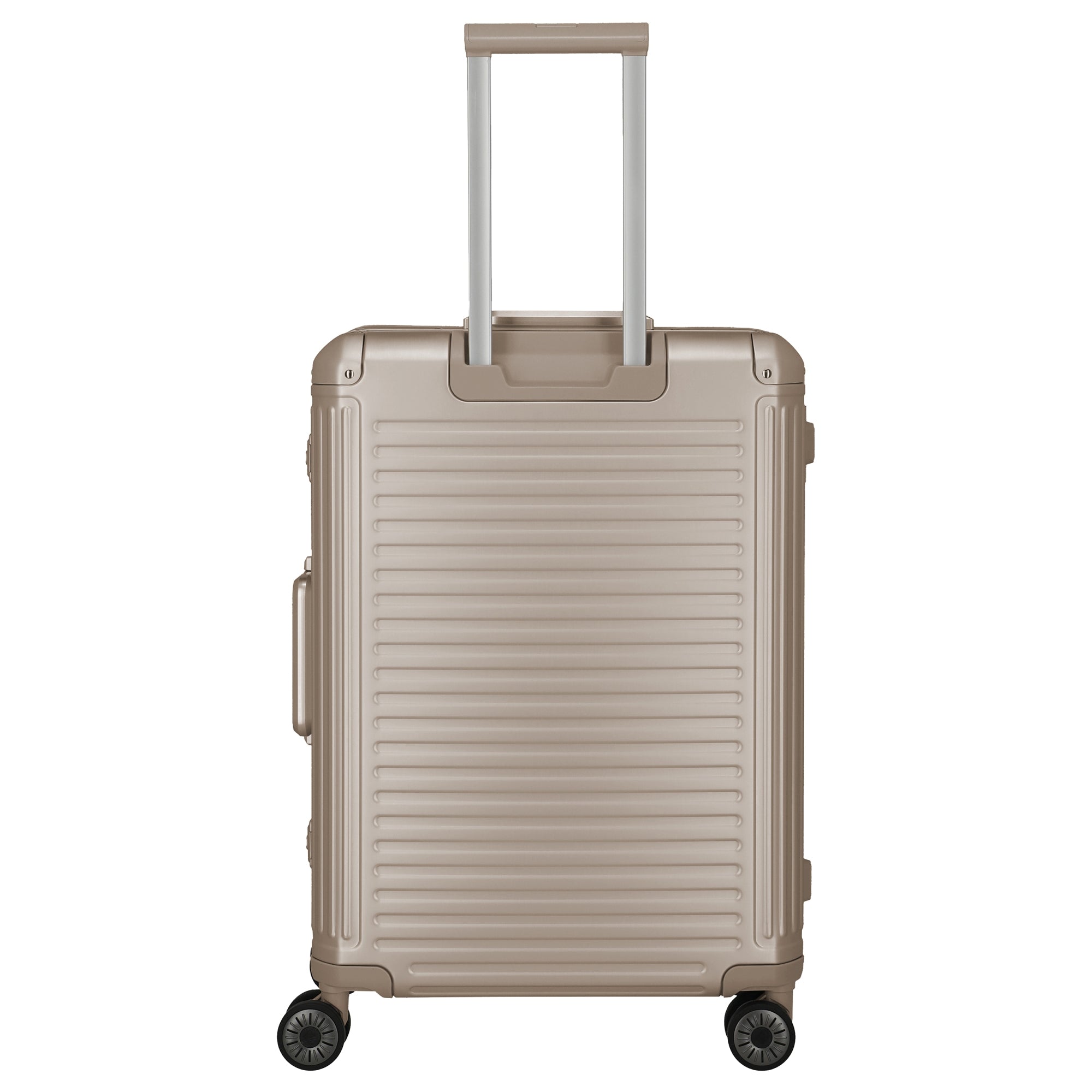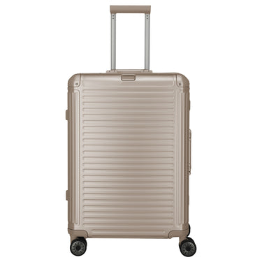 Le Travelite Next Aluminium-Trolley M en noir est le compagnon de voyage robuste parfait pour toutes les aventures. Avec sa construction en aluminium robuste, il allie stabilité et résistance aux chocs dans un design moderne. Le compartiment principal bien organisé offre des cloisons fonctionnelles, des sangles de compression et des poches zippées pour organiser vos bagages de manière optimale. Grâce à la barre télescopique verrouillable et à la poignée de transport, la manipulation est particulièrement confortable. Les grandes roulettes doubles en caoutchouc assurent un déplacement maniable et silencieux, tandis que les fermetures éclair à deux voies avec cadenas à combinaison TSA offrent une protection supplémentaire contre le vol.