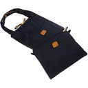 La borsa da viaggio Brics X-Bag con una dimensione di 43 cm è particolarmente leggera e offre spazio sufficiente per i viaggi. È realizzata in nylon satinato, resistente e facile da curare, ed è rifinita con dettagli in pelle. La borsa dispone di un ampio manico in tessuto con chiusura a bottone in pelle e di una tasca laterale con cerniera. Sul retro è presente una cinghia per il fissaggio al manico di traino di un trolley. Inoltre, la borsa da viaggio può essere riposta in una borsa rimovibile con tracolla, fissata con bottoni a pressione.