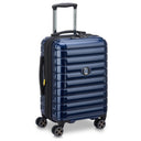 Il Delsey Paris Shadow 5.0 trolley da cabina è alto 55 cm e presenta una colorazione blu marina. È dotato di un sistema di cerniere SECURITECH® 2, che offre una protezione tripla contro accessi non autorizzati. La serratura TSA a combinazione consente un controllo sicuro del bagaglio senza danneggiarlo. La fodera interna è realizzata al 100% con materiali riciclati, è rimovibile e lavabile a 30°. Per il trasporto sono integrati doppi rotelle e un doppio manico telescopico.