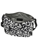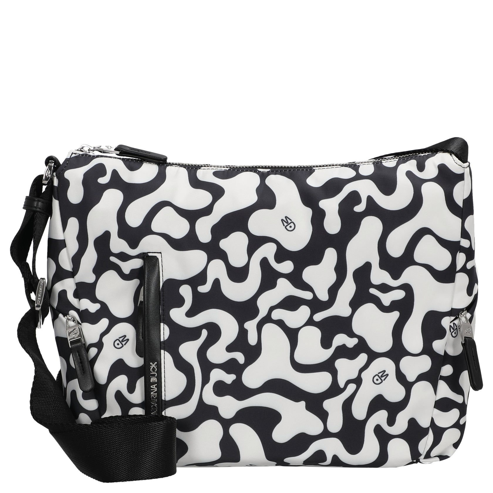 La Mandarina Duck Hunter Moire è una elegante borsa a tracolla con un raffinato motivo **bianco e nero** (moire), che conquista grazie al suo design moderno e alle sue funzionalità pratiche. È ideale per donne attente alla moda che apprezzano il **comfort** e le molteplici possibilità di utilizzo. La borsa si distingue per il materiale leggero e la suddivisione ben organizzata che facilita la vita quotidiana.