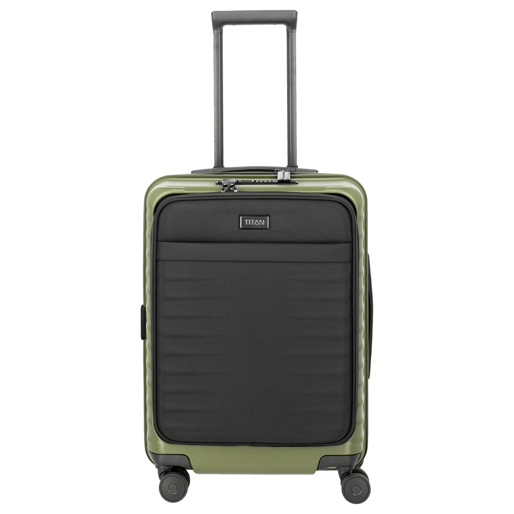 Il trolley da cabina TITAN UPGRADE a 4 ruote, modello S in verde foresta, è una valigia rigida compatta progettata appositamente per i viaggi di lavoro. Con la sua robusta scocca in policarbonato e la pratica tasca frontale, offre soluzioni di suddivisione flessibili per laptop, documenti ed essenziali da viaggio. Il modello unisce stabilità, funzionalità e un design moderno in un formato maneggevole.