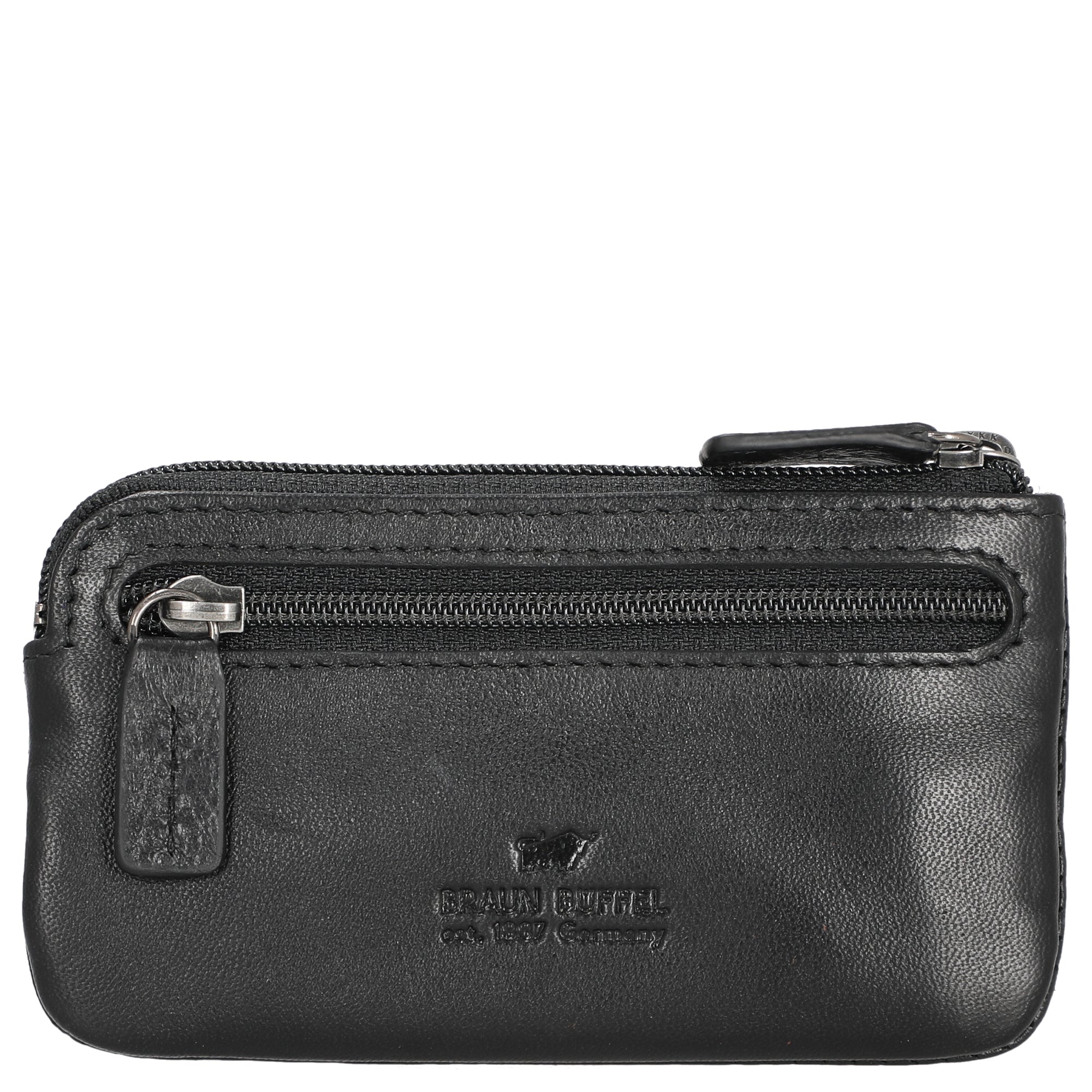 Das BRAUN BÜFFEL Hannes Schlüsseletui in schwarz überzeugt durch seine hochwertige Verarbeitung und ein praktisches Design. Es ist aus erstklassigem Material gefertigt und bietet eine sichere Aufbewahrung für Schlüssel und kleine Gegenstände. Dank der zwei Schlüsselringe und dem integrierten Münzfach bleibt alles übersichtlich organisiert. Ein stabiler Leder-Reißverschluss schützt zuverlässig den Inhalt. Das elegante BRAUN BÜFFEL Logo verleiht dem Etui einen stilvollen Abschluss.