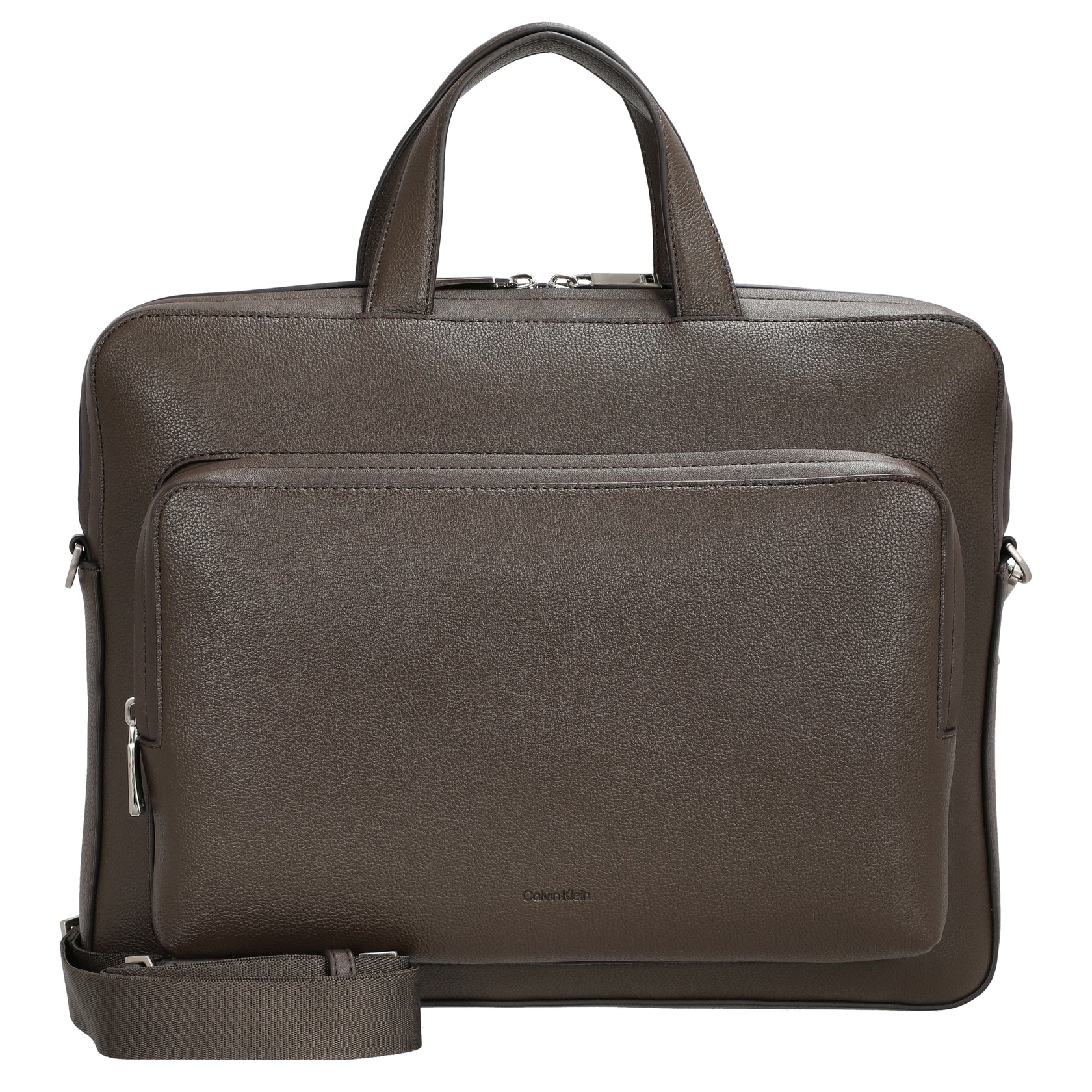 Die Calvin Klein Micro Pebble Slim Briefcase ist eine hochwertige Aktentasche, die durch ihr edles genarbtes Leder in dunkelbraun besticht. Das zeitlose Design vereint Funktionalität und stilvolle Eleganz, ideal für den anspruchsvollen Business-Alltag. Das Hauptfach bietet ausreichend Platz und ist mit mehreren inneren Fächern für eine optimale Organisation ausgestattet. Die Tasche verfügt über zwei stabile Ledergriffe sowie einen abnehmbaren, verstellbaren Schultergurt für flexible Tragemöglichkeiten. Hochwertige Reißverschlüsse in Silberoptik sorgen für sicheren Schutz Ihrer Utensilien und unterstreichen das professionelle Erscheinungsbild.