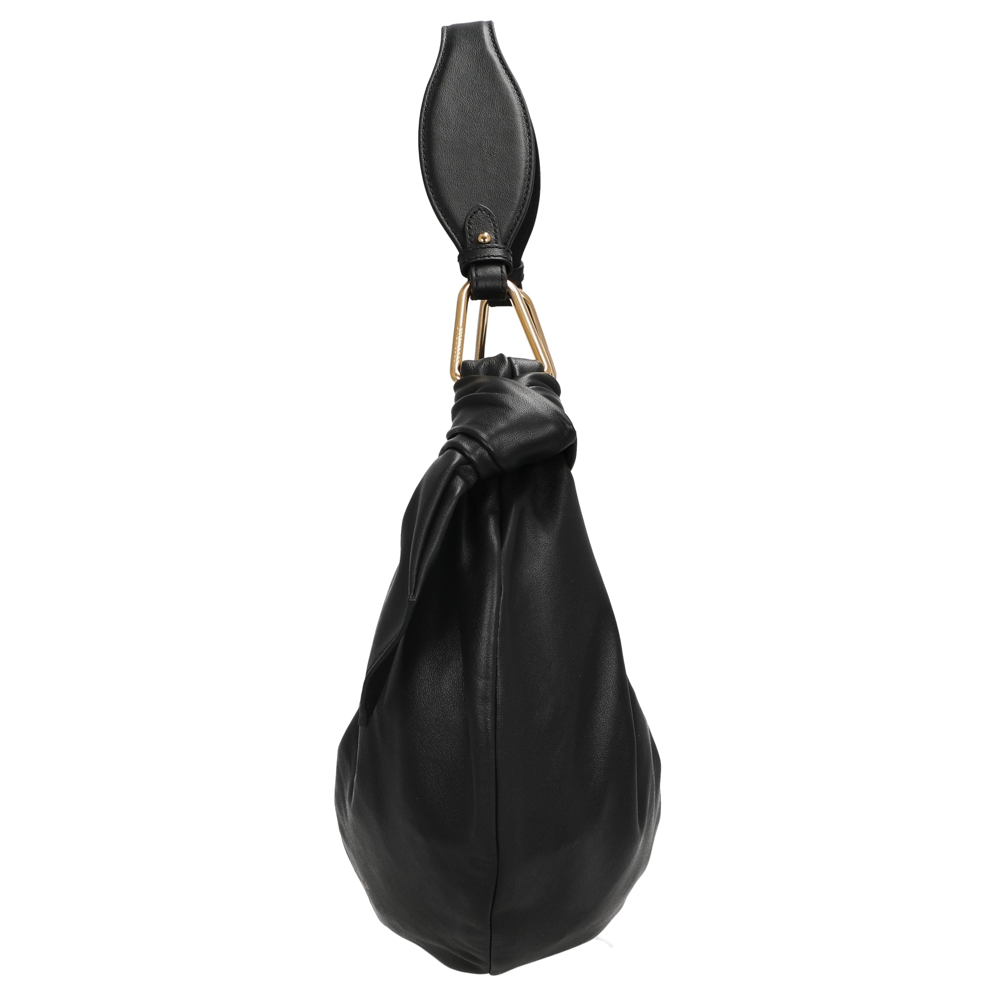 - Besonderheit: Das Leder wird um Metallplektren drapiert und geknotet, was der Tasche ihre einzigartige Form und luftige Eleganz verleiht.