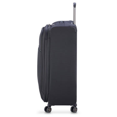 Der Delsey Paris Helium Dlx 2.0 4-Rollen-Trolley in schwarz misst 83 cm und bietet ein erweiterbares Volumen von bis zu 143 Litern. Der Trolley verfügt über einen Zwei-Wege-Reißverschluss und einen geräumigen Innenraum mit praktischen Packgurten und einer Reißverschlusstrennwand. Für die Sicherheit sorgt ein integriertes TSA-Schloss. Zwei Tragegriffe an der Seite und oben ermöglichen eine flexible Handhabung. Die vier leichtgängigen Doppelrollen gewährleisten eine einfache Mobilität auf verschiedenen Untergründen.