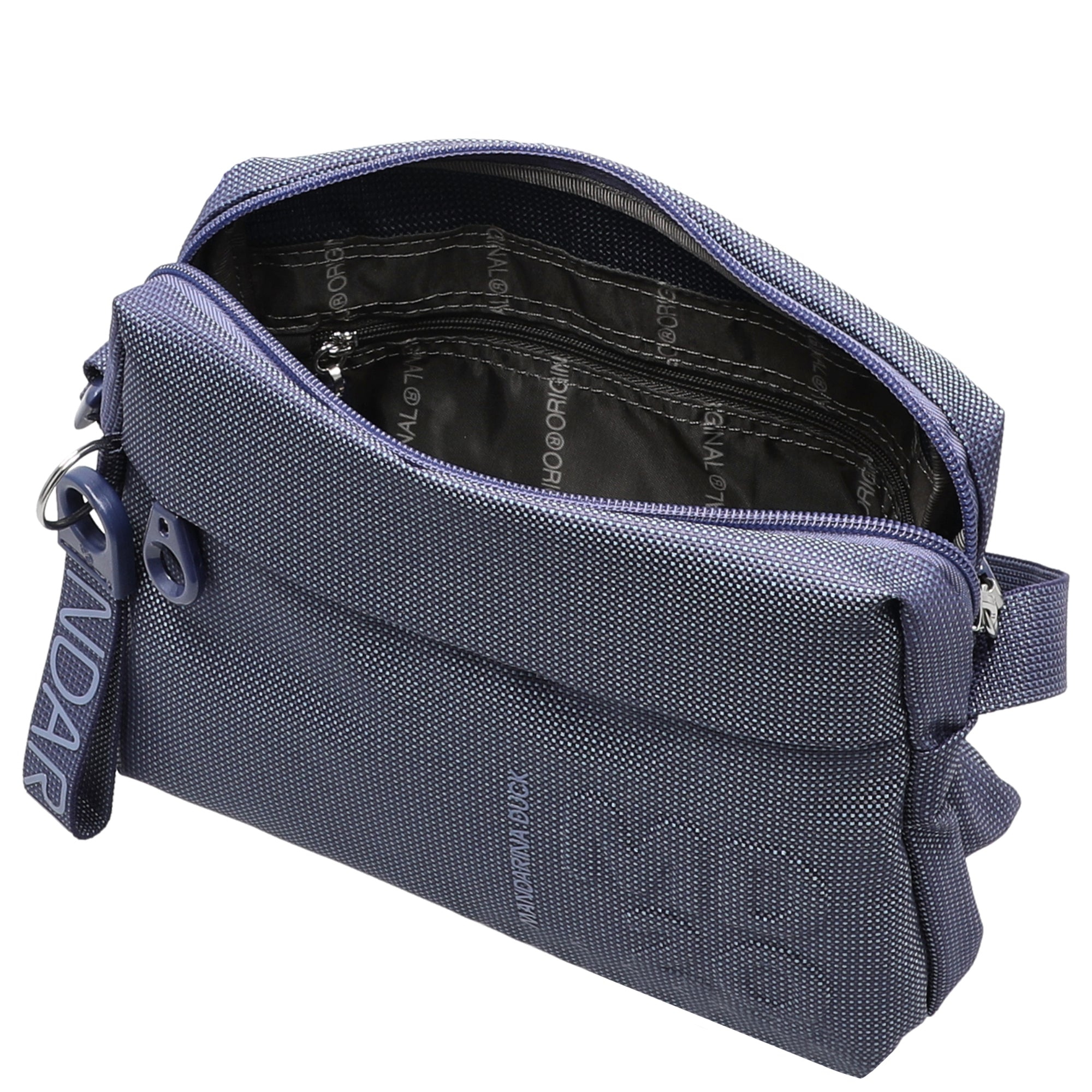 - Markendetails: Mandarina Duck-Anhänger und Schriftzug auf der Vorderseite
