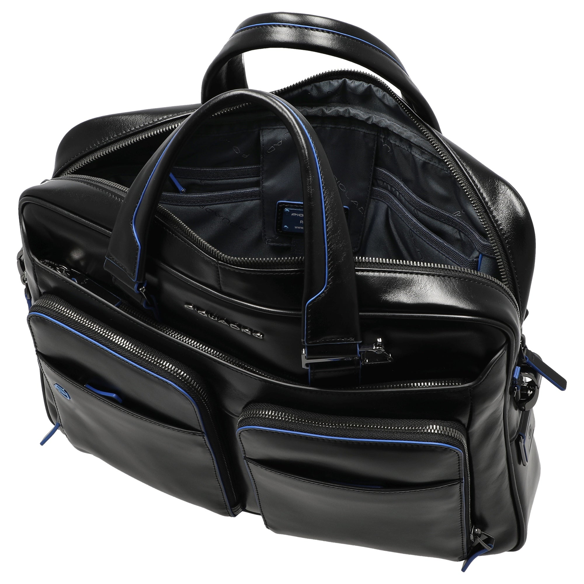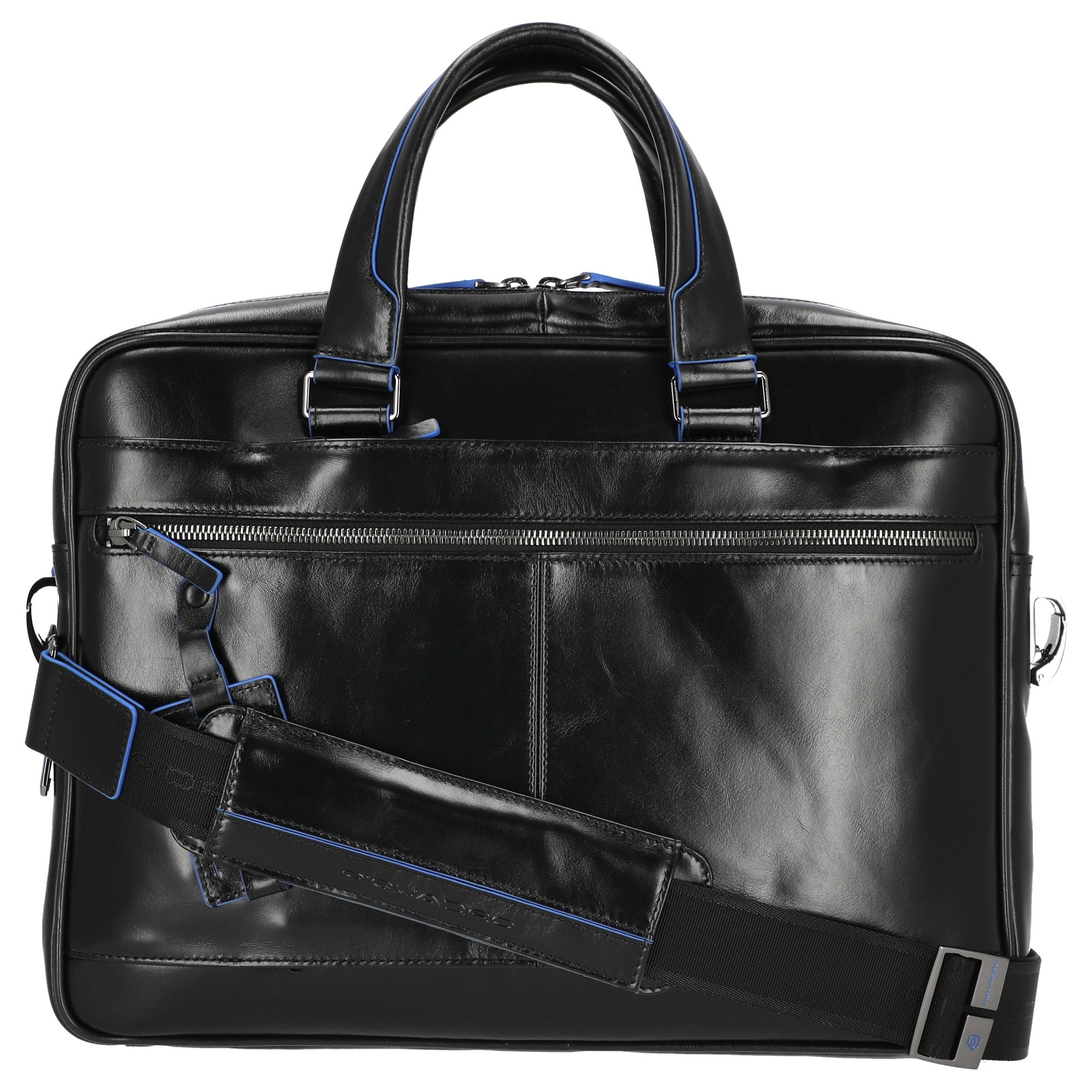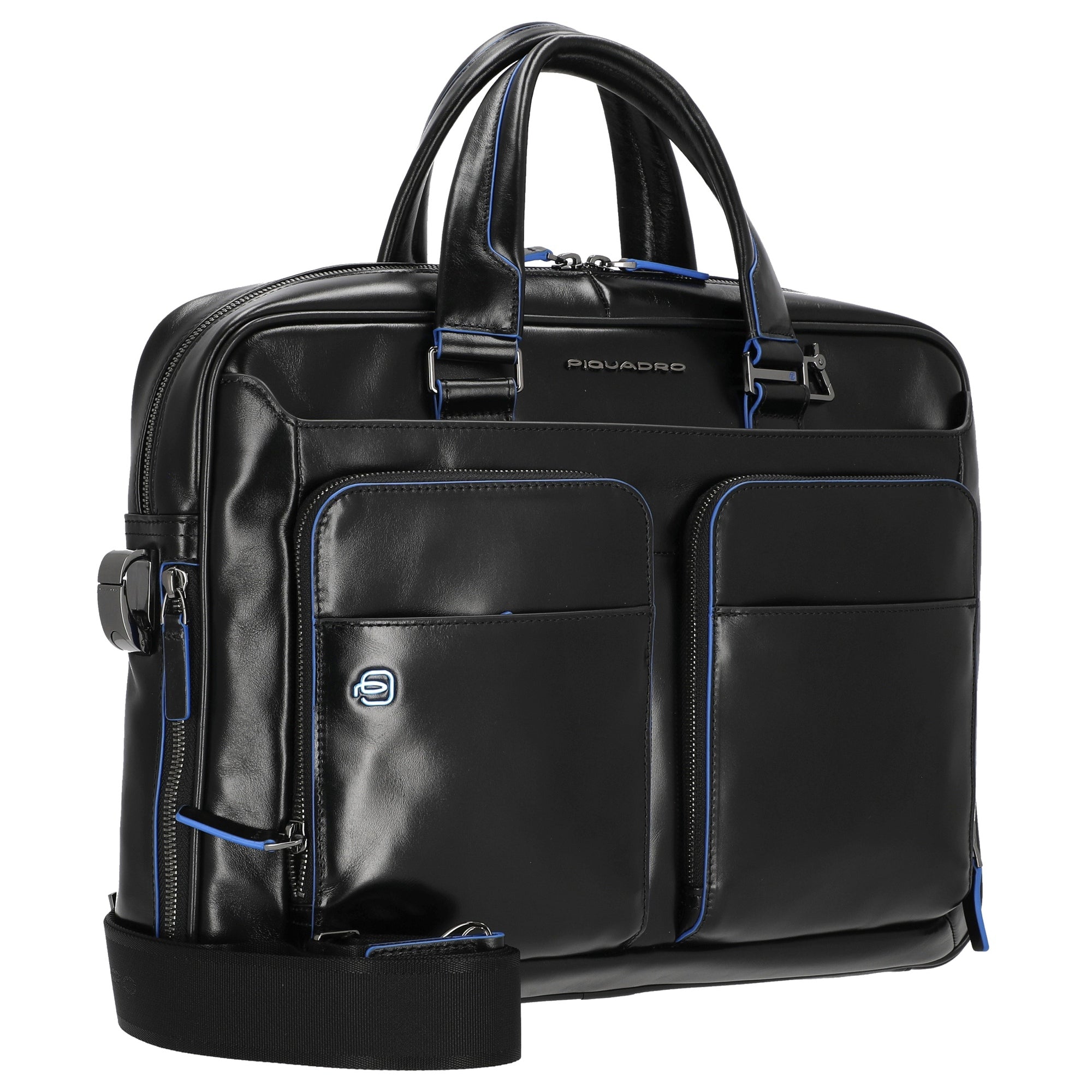 Die Piquadro Blue Square Aktentasche 14" in elegantem Schwarz bietet eine stilvolle und funktionale Lösung für den beruflichen Alltag. Mit ihrem hochwertigen Design und der durchdachten Aufteilung ist sie ideal für das sichere Verstauen von Dokumenten und Technik. Die Tasche überzeugt durch ihre vielseitigen Trageoptionen und praktischen Details.