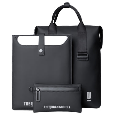 Der The Urban Society Combo Rucksack in schwarz ist der ideale Begleiter für den Alltag in der Stadt, Uni oder Outdoor. Dank des gepolsterten und ventilierten Kontaktrückens sowie der komfortablen, gepolsterten Schultergurte sitzt er angenehm und entlastet den Rücken auch bei längeren Tragezeiten. Innen bietet er ein geräumiges Hauptfach für A4-Unterlagen und eine herausnehmbare, gepolsterte Laptoptasche für Geräte bis 12 Zoll. Die praktische Fächeraufteilung sorgt für Ordnung und schnellen Zugriff auf alle wichtigen Dinge. Außen schützt ein wasserfester Reißverschluss den Inhalt zuverlässig vor Nässe.