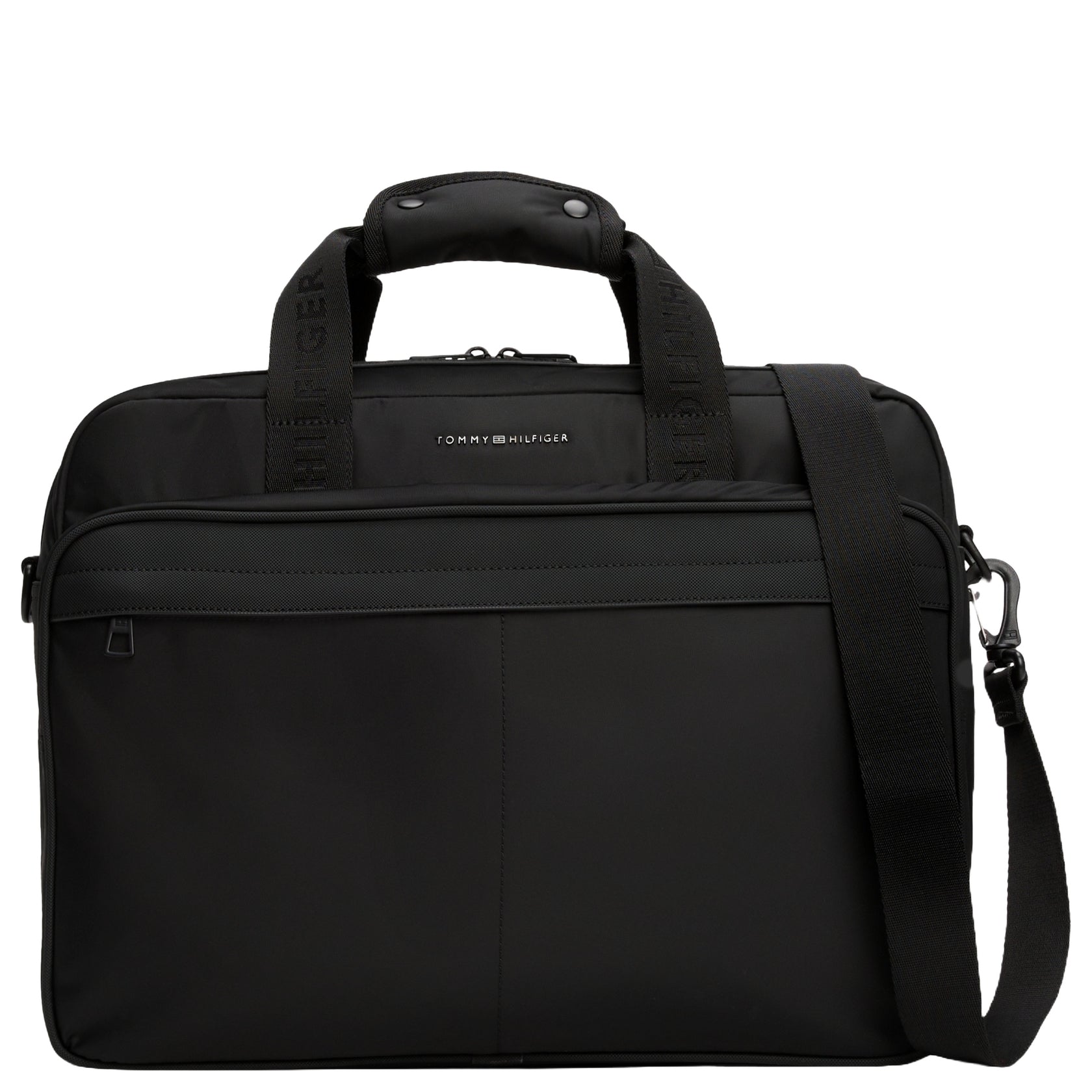 Die Tommy Hilfiger Repreve Laptoptasche in schwarz vereint Funktionalität und stilvolles Design. Sie verfügt über ein gepolstertes Laptopfach, das optimalen Schutz für Ihr Gerät bietet. Der Schultergurt sorgt für einen bequemen Transport, während die Außentasche mit Magnetverschluss zusätzlichen Stauraum bietet. Die Tasche wird sicher mit einem Reißverschluss verschlossen und ist mit dem Tommy Hilfiger Logo auf der Vorderseite versehen. Perfekt für den Alltag und Geschäftsreisen.