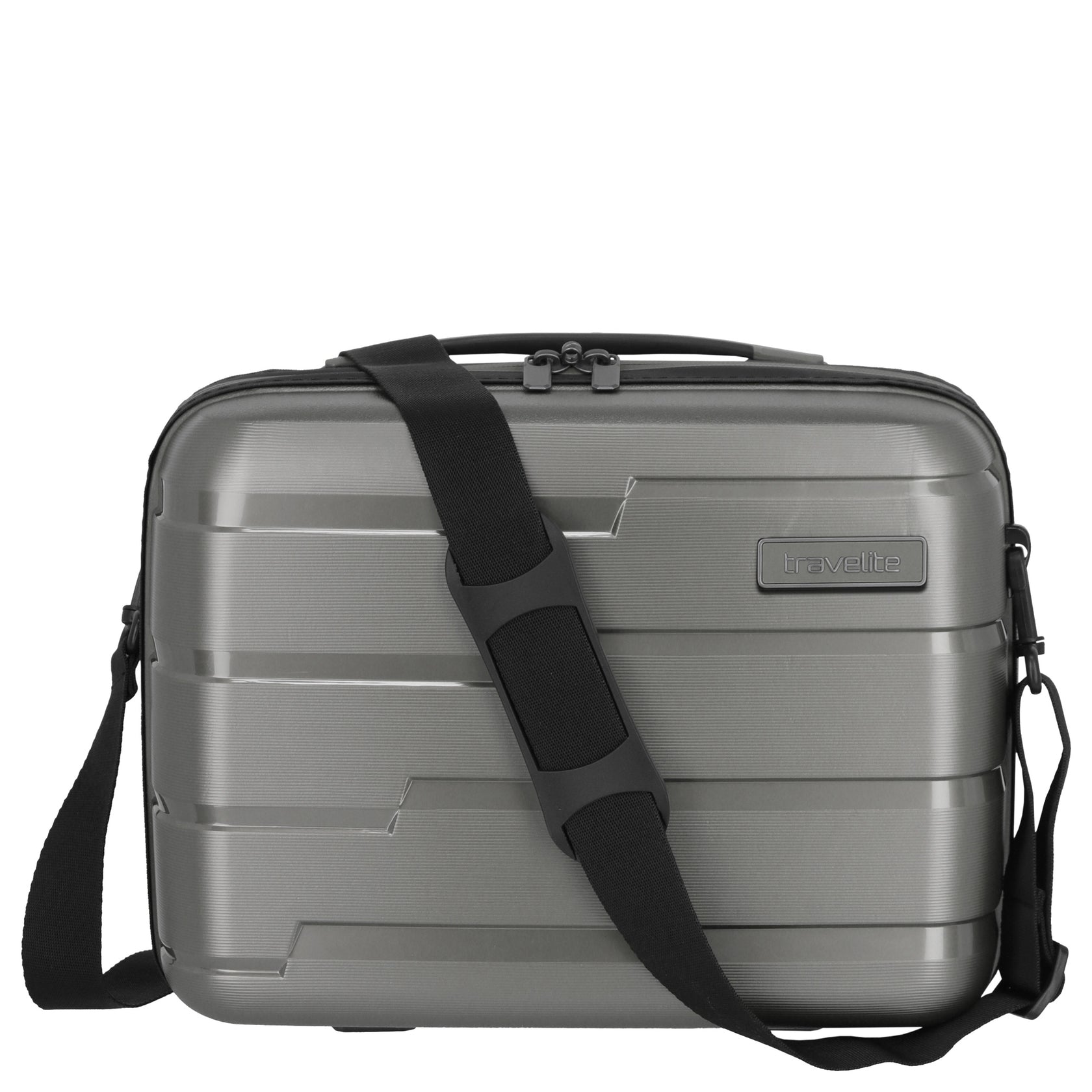 Das Air Base Beautycase ist eine elegante Ergänzung der Air Base Kofferserie in **Anthrazit**. Es überzeugt durch sein funktionales Design und hochwertige Materialien, die für eine langlebige Nutzung sorgen. Der großzügige Innenraum bietet **übersichtliche Organisation** für alle Reiseutensilien. Dank der praktischen Aufsteckfunktion lässt sich das Beautycase sicher auf dem Trolley befestigen. Ein längenverstellbarer, abnehmbarer Schulterriemen sorgt für flexible Tragemöglichkeiten.